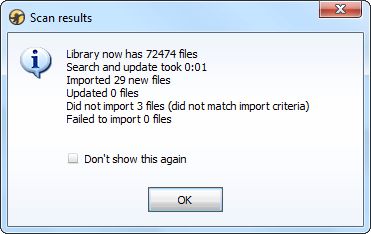 - To re-enable the Scan Results dialog after scanning set ConfirmScanResults to ConfirmScanResults=1 in the MediaMonkey.ini[5] file (make sure MediaMonkey is closed when editing MediaMonkey.ini[6].)